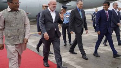 सोमवार रात महाराष्ट्र के मुख्यमंत्री देवेंद्र फडणवीस और गवर्नर आचार्य देवव्रत ने मुंबई के छत्रपति शिवाजी महाराज इंटरनेशनल एयरपोर्ट पर उनका और फर्स्ट लेडी ब्रिगिट मैक्रों का स्वागत किया.