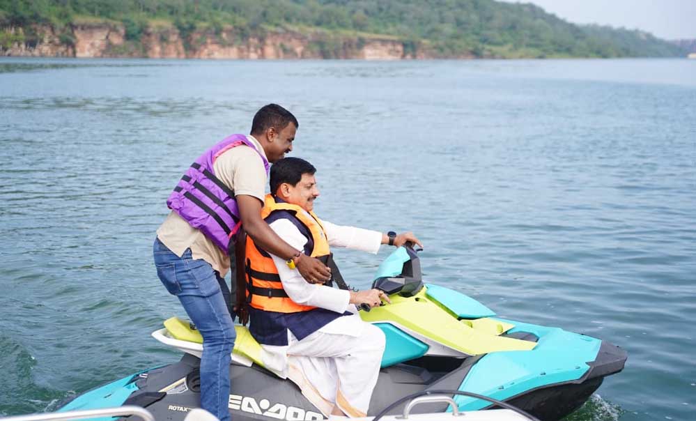 मुख्यमंत्री डॉ. यादव ने चंबल नदी में बोटिंग कर जेट स्काय की सवारी की
