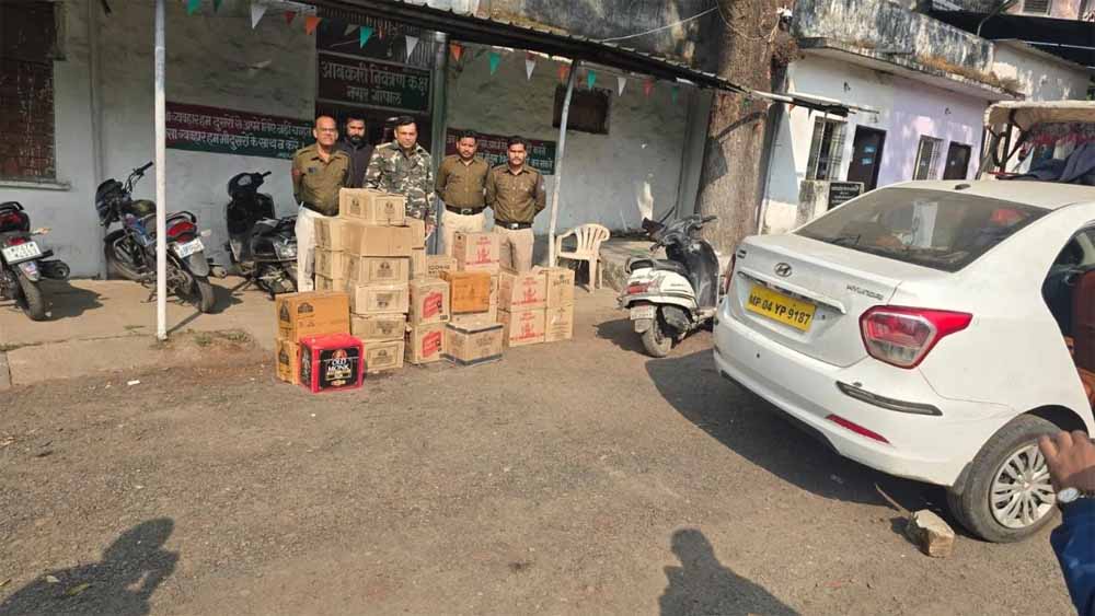 भोपाल की पॉश कॉलोनी में बड़ी कार्रवाई: साढ़े तीन लाख की अंग्रेजी शराब जब्त, तस्कर कार छोड़ कर फरार