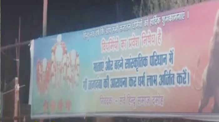 दमोह के देवी मंदिर में ‘विधर्मियों’ की एंट्री बैन का पोस्टर, लव जिहाद पर हिंदू संगठन की चेतावनी