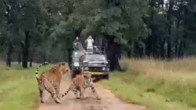 MP का कान्हा टाइगर रिजर्व: बाघ-बाघिन की रोमांचक आमने-सामने की झलक, सैलानियों ने किया कैद!