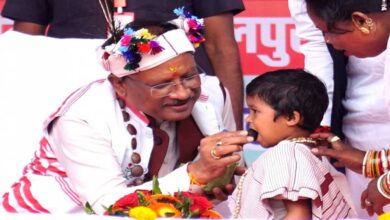मुख्यमंत्री विष्णुदेव साय का आत्मीय और वात्सल्यपूर्ण व्यवहार : नन्ही बच्ची भूमिका बघेल को दुलारते हुए खिलाया महुआ लड्डू